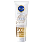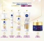 Luce una piel visiblemente más uniforme y luminosa con el Set Completo NIVEA Luminous630° Anti-Manchas. Esta rutina experta de 5 pasos está formulada para reducir visiblemente las manchas, unificar el tono y brindar hidratación y protección profunda. Cada producto trabaja en conjunto para tratar y prevenir la reaparición de manchas:
